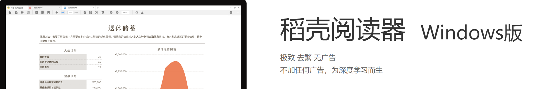 稻壳阅读器具有体积小、占用资源少、程序启动及打开文档速度快等优点,支持PDF、XDF、XPS、EPUB、MOBI等30多种格式的文档
