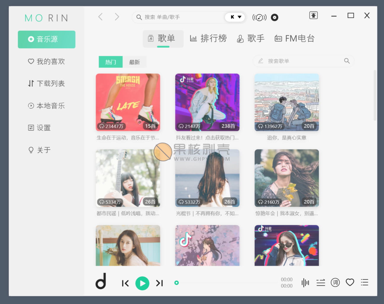 Morin魔音是一款第三方的音乐播放器软件,包括多种音乐源,软件使用.net开发,体积小巧,功能强大。支持播放音乐与下载音乐,能下载无损音乐。使用WPF开发,界面做的也不错,值得使用。提供给喜欢听音乐又懒得找音乐的小伙伴。下载地址:此处内容需要评论回复后(审核通过)方可阅读。 最后修改:2020 年 09 月 03 日 © 允许规范转载 赞 如果觉得我的文章对你有用,请随意赞赏