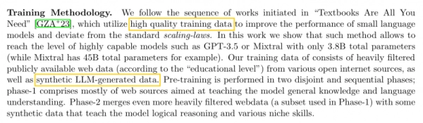 这一思路沿用自微软Phi系列开山论文《Textbooks Are All You Need》的高质量数据集路线。在该论文中,微软用规模仅为 7B token 的“教科书级高质量数据”训练出1.3B参数的Phi-1,并自此沿用了这一路线。